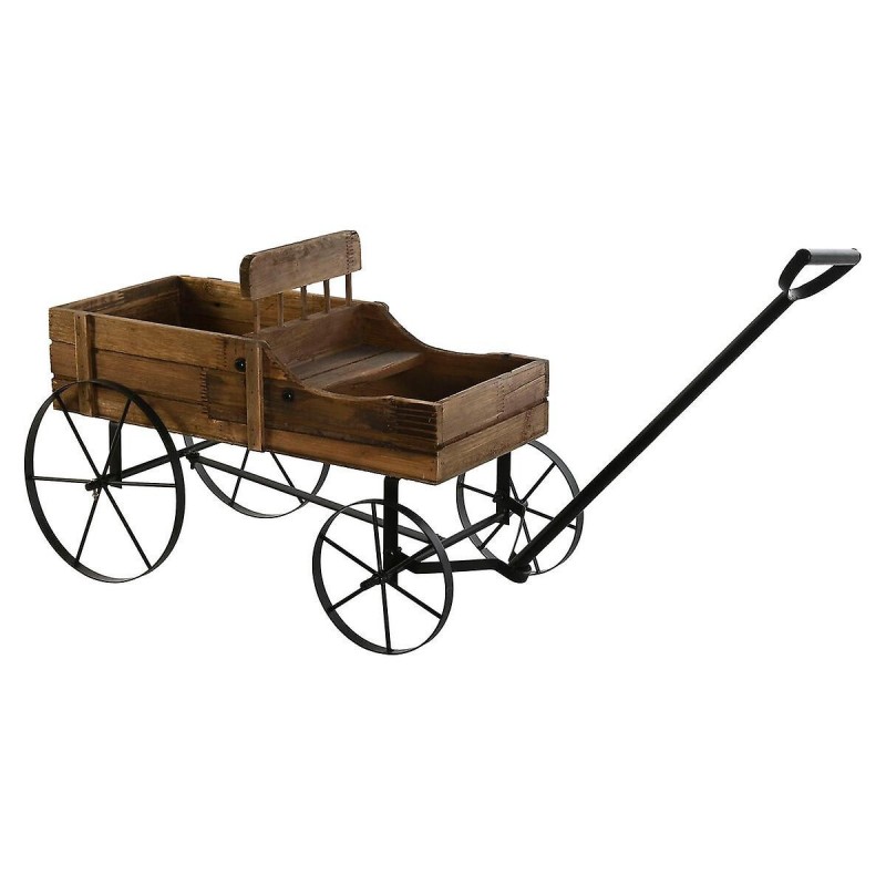 Tipo: Carrello da giardino, Colore: Nero, Marrone scuro, Materiale: Legno, Metallo, Abete, Legno riciclato, Abete, Dimensioni approssimative: 60 x 31 x 57 cm